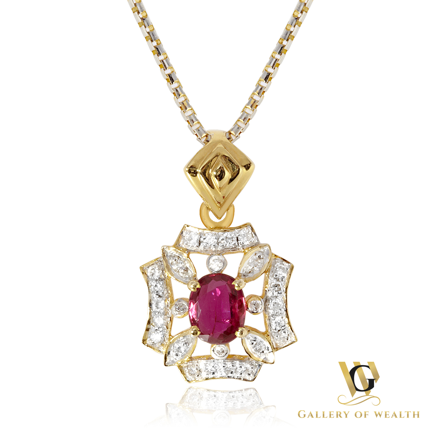 Ruby Pendant with Diamonds in 18 karat international yellow gold setting with hallmark 750